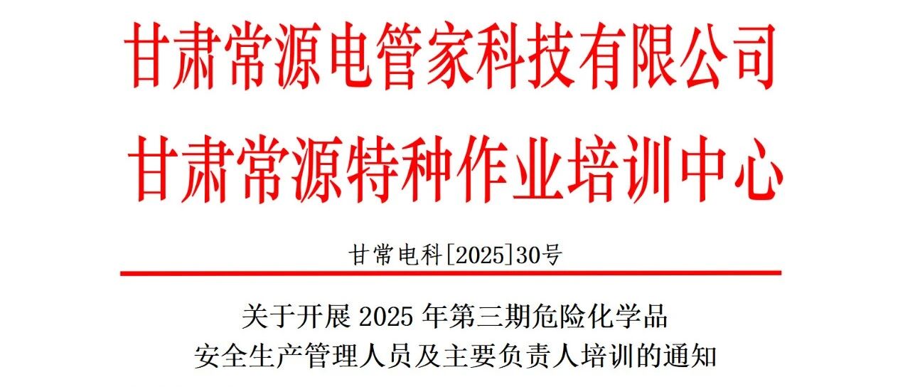 关于开展2025年第三期危险化学品安全生产管理人员及主要负责人培训的通知