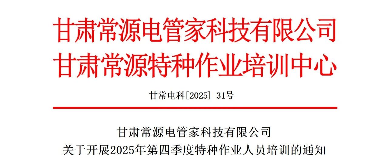 关于开展2025年第四季度特种作业培训的通知